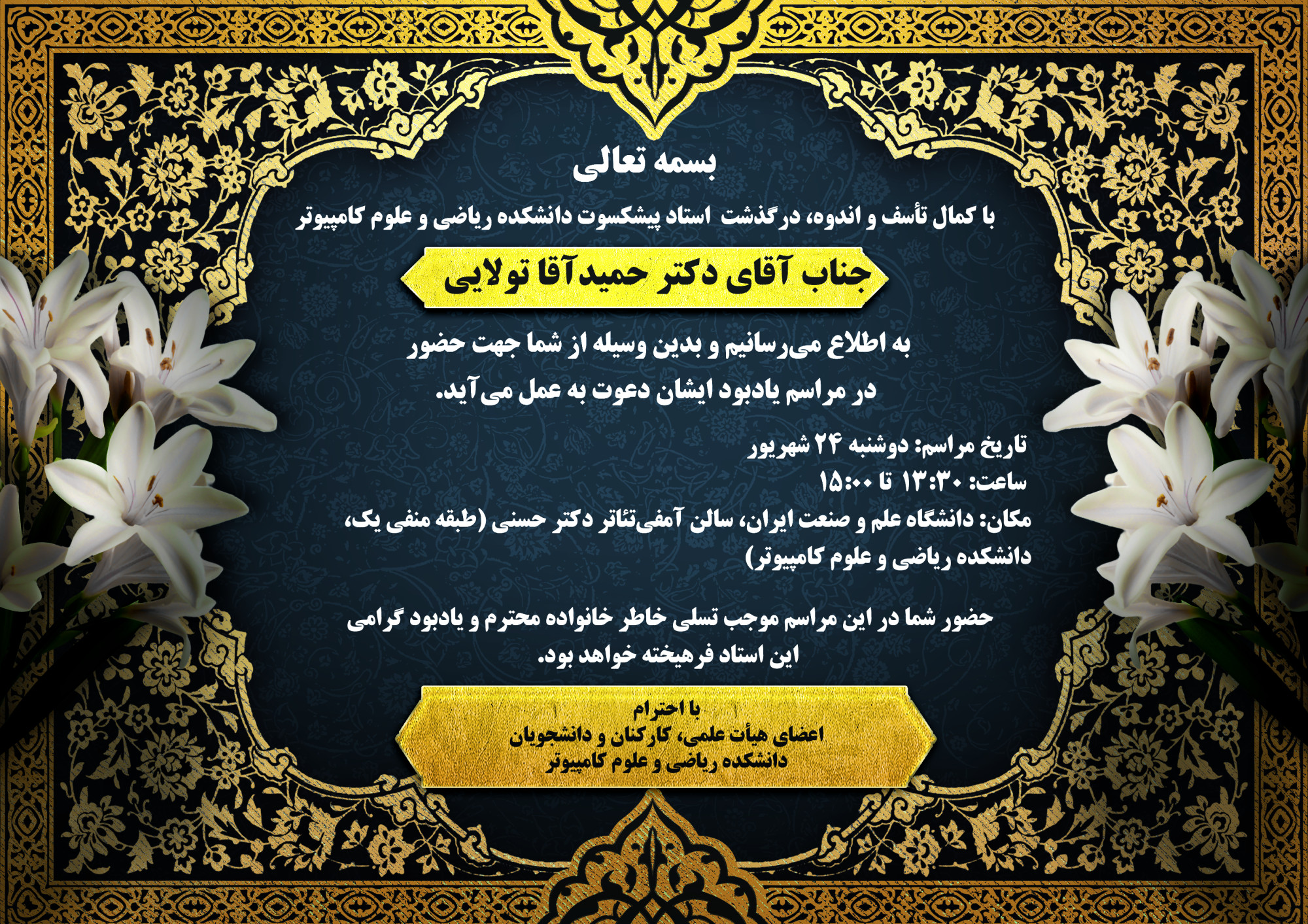 مراسم بزرگداشت استاد پیشکسوت، زنده یاد دکتر حمیدآقا تولایی